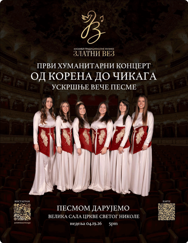 U srcu srpske dijaspore u Čikagu, ansambl „Zlatni Vez“ priprema svoj prvi veliki koncert, koji će biti održan 19. aprila u sali Srpske pravoslavne crkve Svetog Nikole u Lyons-u. Ovaj događaj, osim što donosi veče ispunjeno tradicionalnom muzikom i emocijom, ima i poseban humanitarni značaj.
